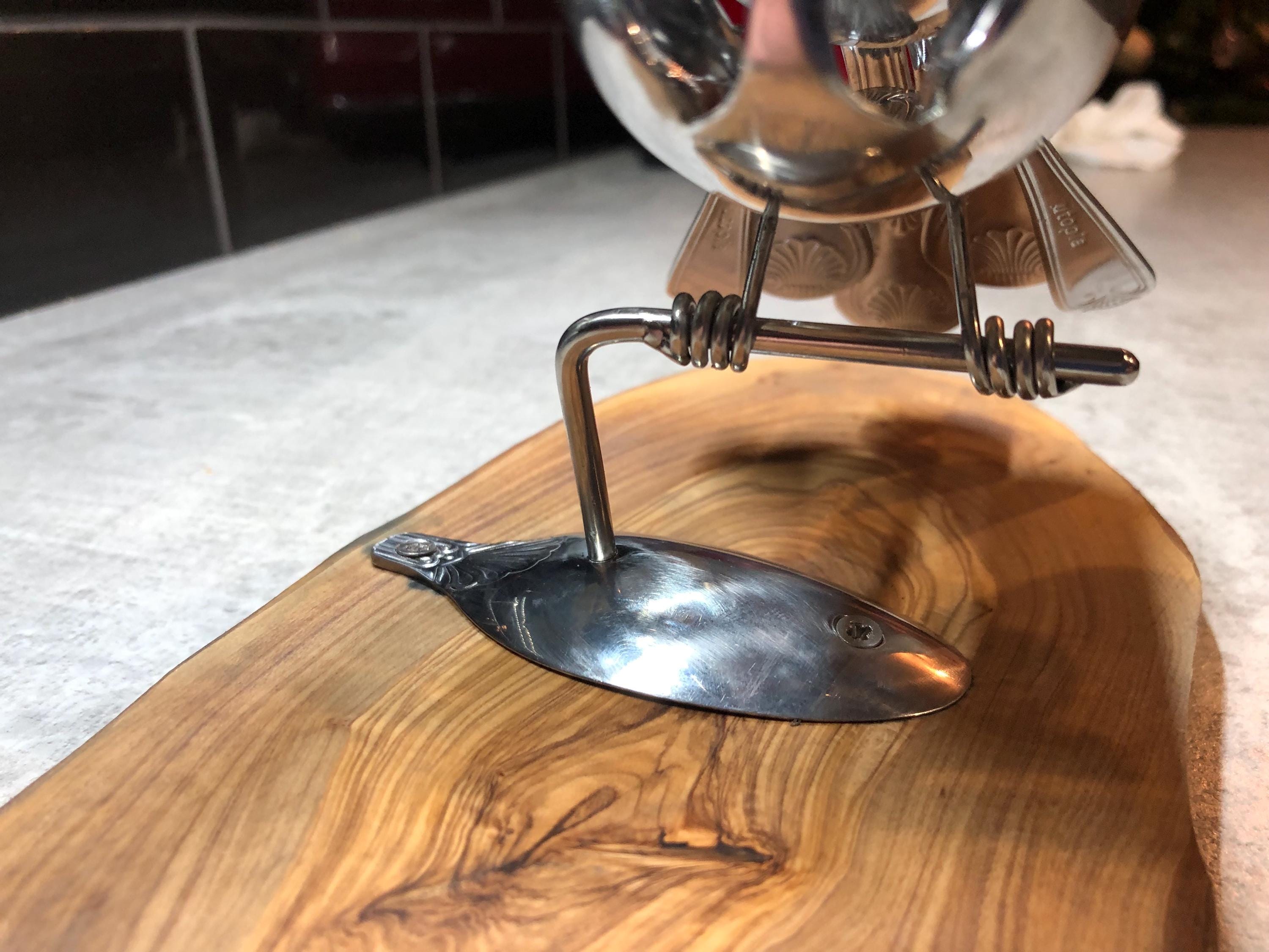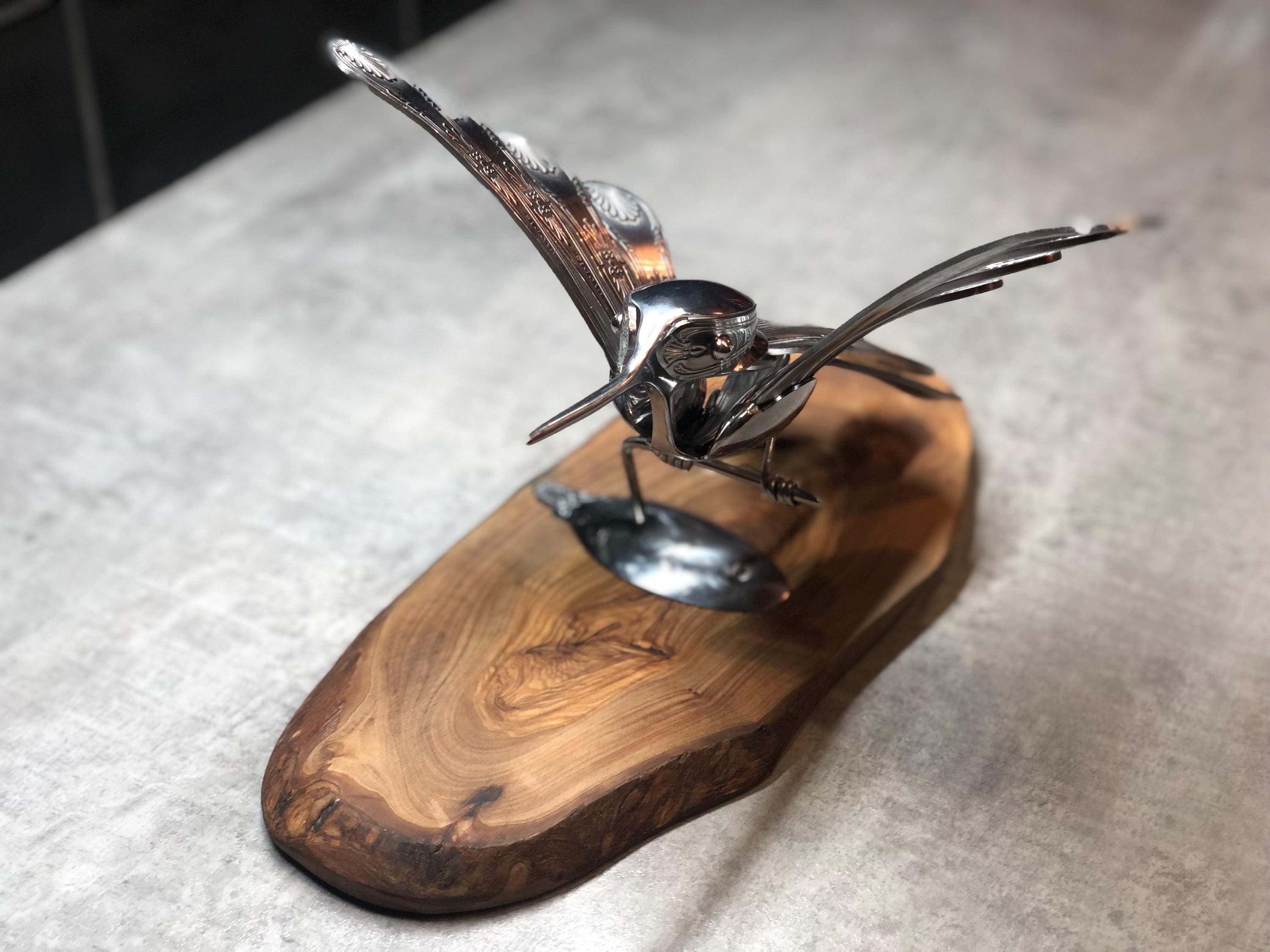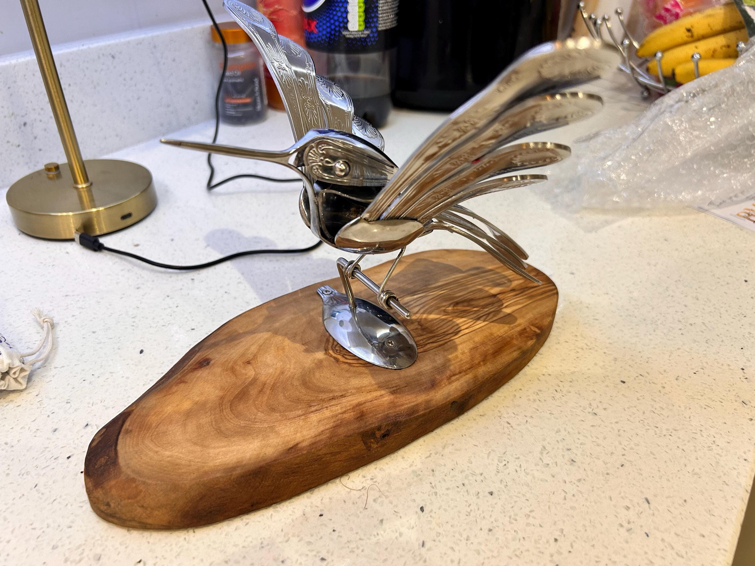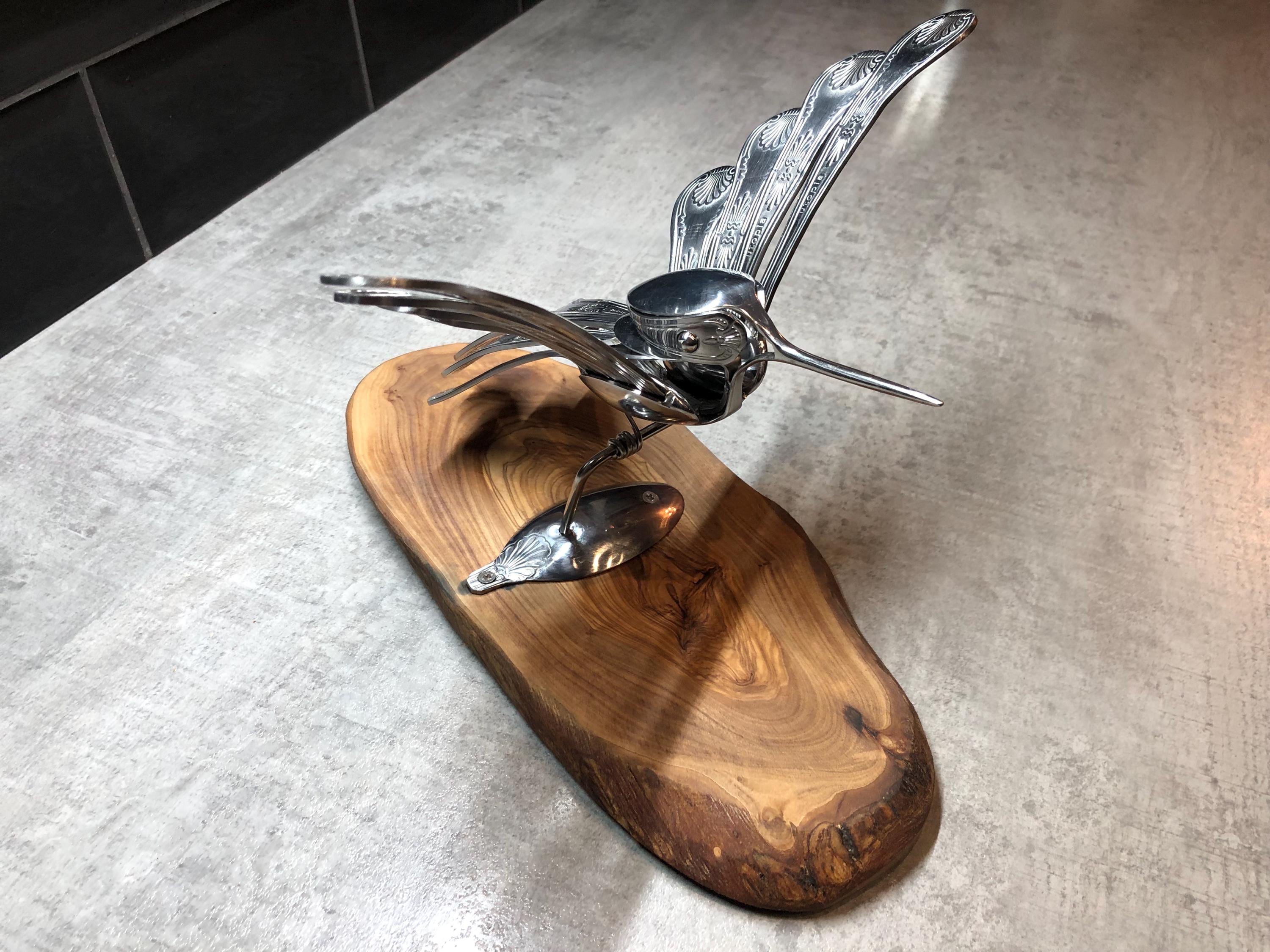 Free USA Shipping; Table top Cutlery bird, hand-made from upcycled silverware, wall art, bird figurine, spoon artwork,