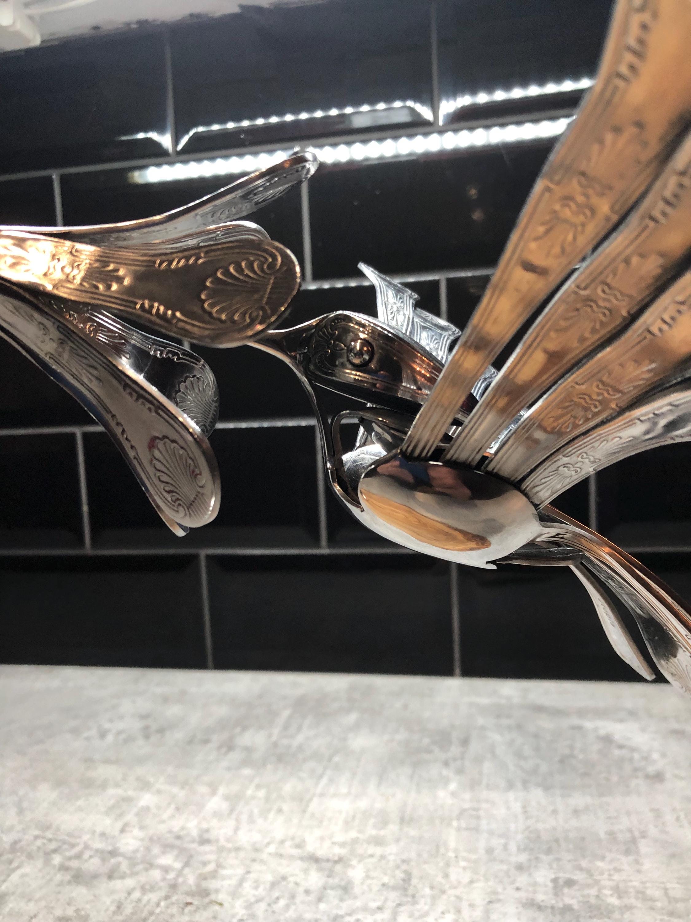 Sustainable Art: Made using repurposed cutlery, turning everyday items into beautiful works of art.
